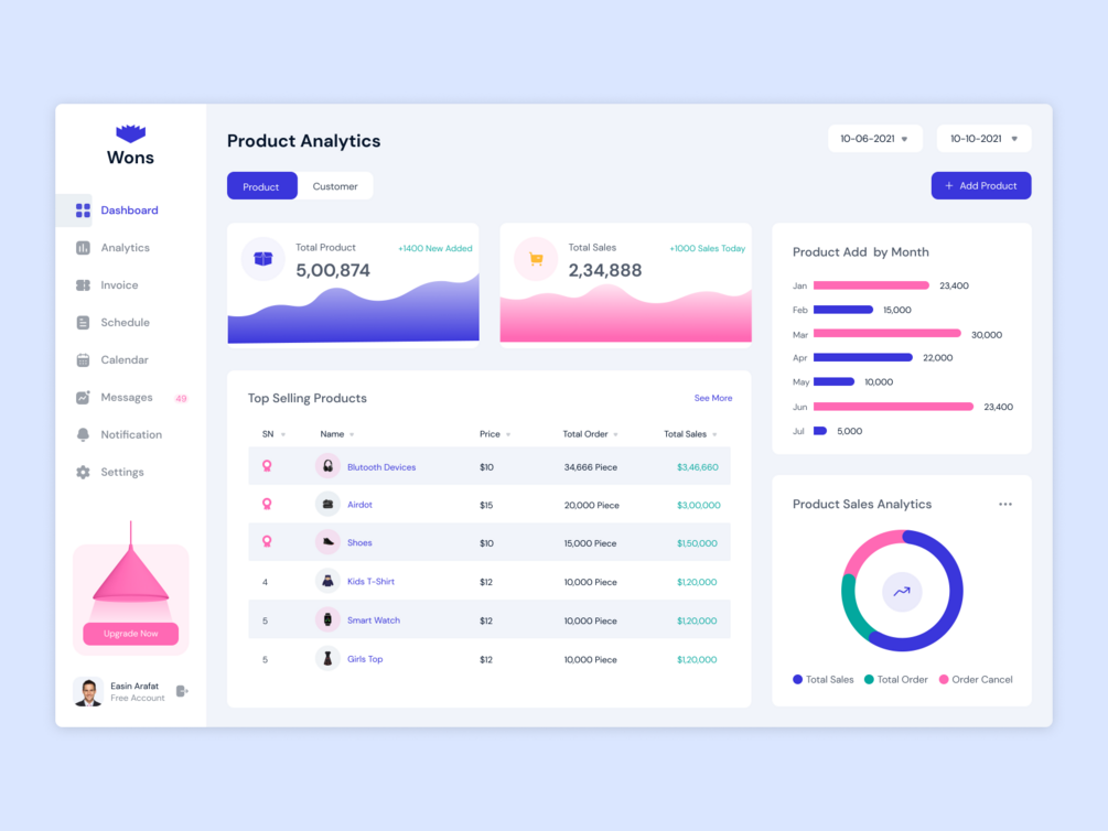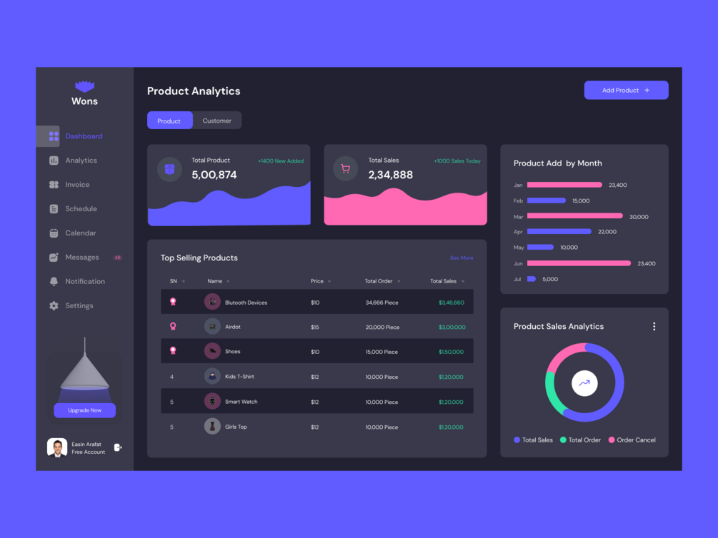 Wons Free Admin Dashboard
